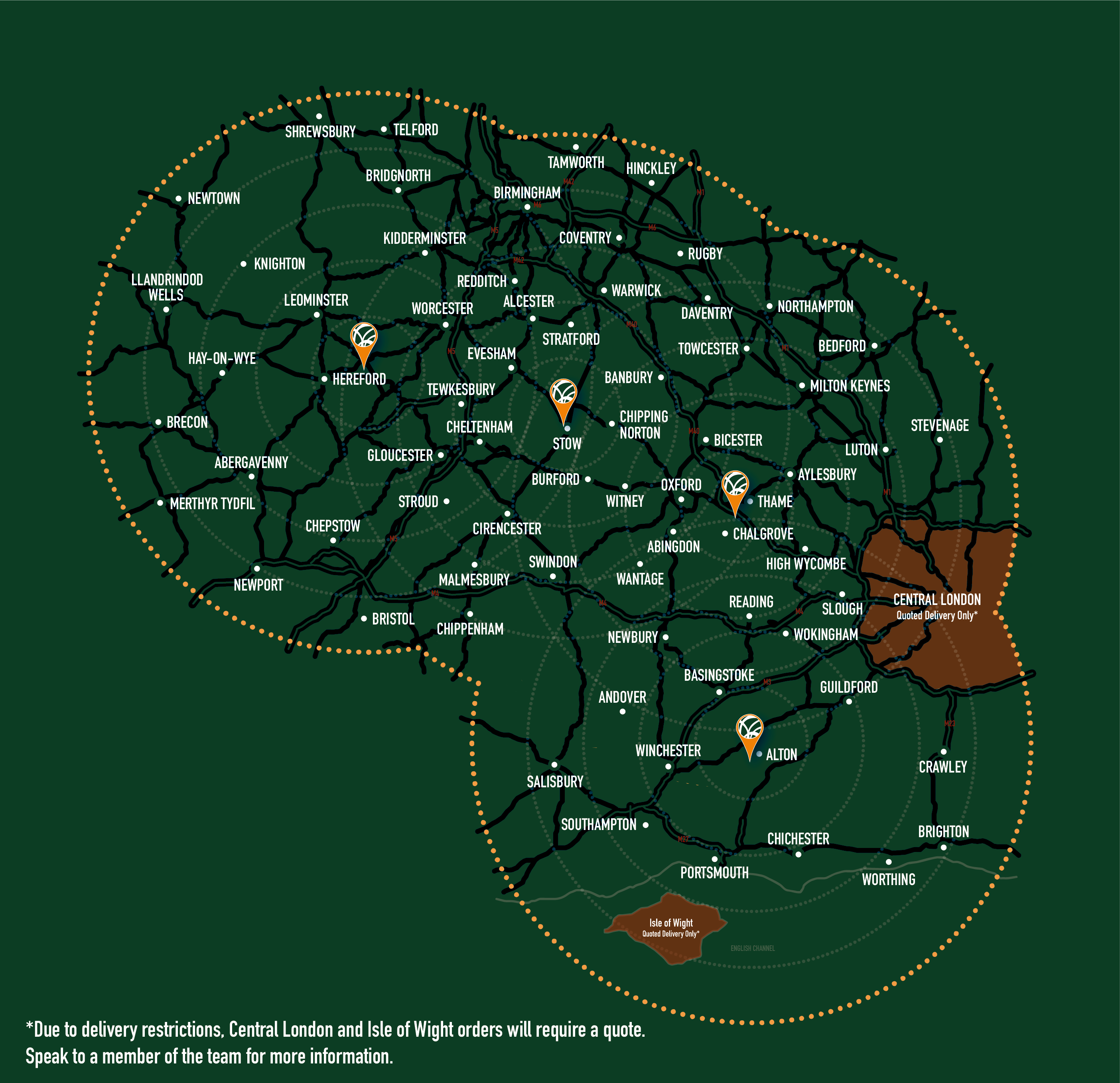 If you’re outside our radius, our customer service team will be happy to provide you with a delivery quote.