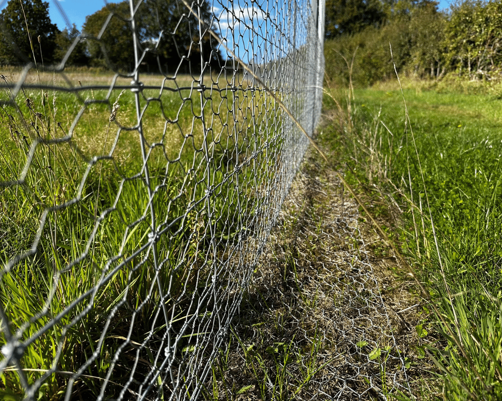 The perimeter was constructed using Fetra deer fencing at the required height to exclude deer, with rabbit netting fixed securely to the base to prevent burrowing damage.