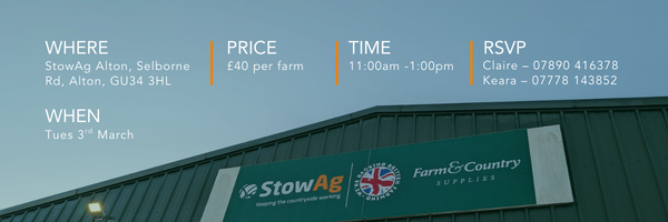 WHERE: StowAg Alton, Selbourne Rd, Alton, GU34 3HL